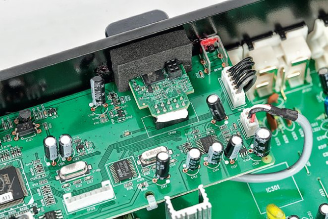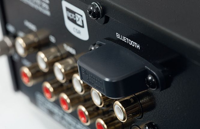 Główną sekcję audio wspomaga mniejszy moduł (tuż przy ściance tylnej); są tam układy sterujące, a ponadto niewielki obwód z odbiornikiem Bluetooth z obsługą standardu aptX.