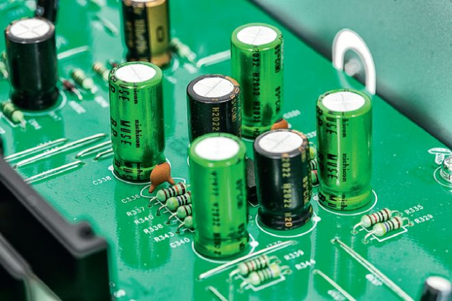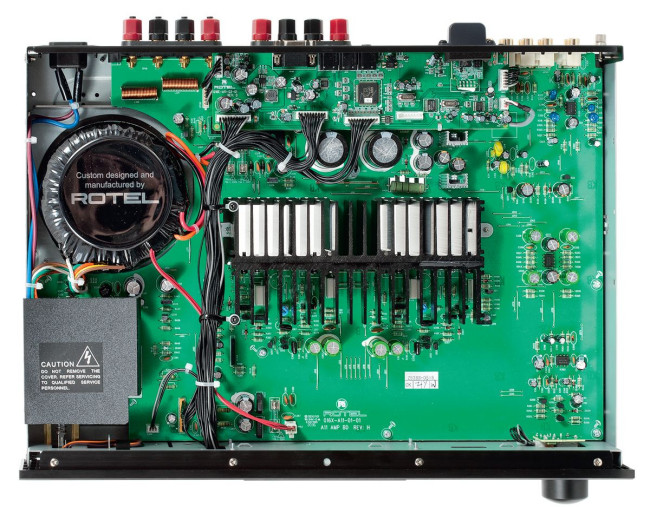 Przedwzmacniacz gramofonowy oparto na układach scalonych, podobnie jak obwody liniowe. Transformator toroidalny ulokowano z lewej strony, pozostałe komponenty zasilacza (prostownik, kondensatory filtrujące) trafiły na główną płytkę w okolice końcówek mocy.
