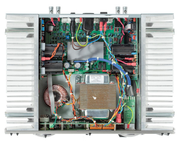 W konstrukcji obudowy nie ma typowej ramy, specjalną rolę mechaniczną odgrywają dwa bloki radiatorów tworzących boczne ścianki, do których przykręcono przednią i tylną płytę. Transformator rdzeniowy zasilają końcówki mocy; mniejszy toroidalny dedykowano przedwzmacniaczowi, którego niewielka płytka znajduje się przy dolnej ściance.