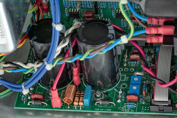 Niepokoić może sposób prowadzenia sygnału między regulatorem głośności (wysokiej klasy potencjometr Alps) a płytką przedwzmacniacza – za pomocą przewodów, które ułożono nieopodal transformatora zasilającego. Z kolei sygnał z przedwzmacniacza jest przesyłany do końcówek za pomocą krótkiego odcinka taśmy. Ale jak pokazują pomiary, mimo to szumy są bardzo niskie.