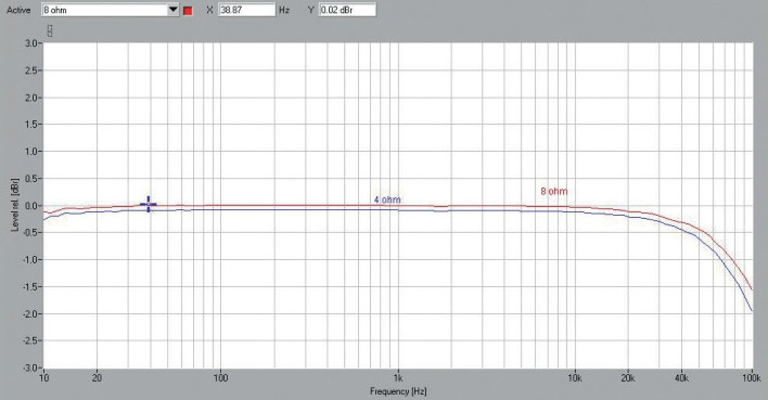 Zapowiedziana moc 150 W przy 8 Ω zgadza się co do wata zarówno przy wysterowaniu jednego, jak i dwóch kanałów. ATC nie podaje mocy dla 4 Ω, ale takiego obciążenia nie wyklucza, więc sprawdziliśmy, co się dzieje: oczywiście wzrasta, co prawda nie dwukrotnie, ale do 221 W przy jednym i 2 x 206 W przy dwóch kanałach. Czułość wzmacniacza jest tylko nieznacznie niższa od standardowej – 0,34 V.