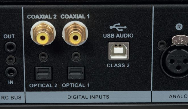 Jesteśmy oswojeni z niskimi czułościami, ale 1,4 V może budzić wątpliwości, co jednak dotyczy wejścia XLR (a takie wyjścia w odtwarzaczach mają zwykle nie 2 V, a ok 4 V), czułość dla wejścia RCA wynosi 0,71 V.