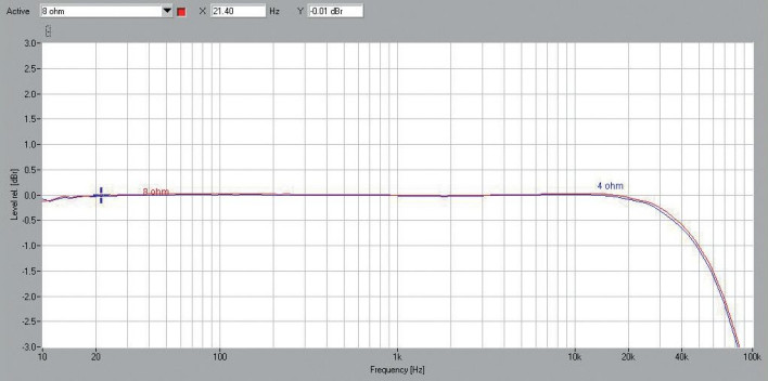 Impedancja wyjściowa jest skrajnie niska – 0,013 Ω, co wprost przekłada się na bardzo wysoki współczynnik tłumienia (312 w odniesieniu do 4 Ω).