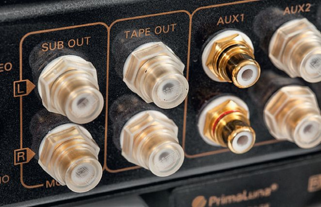 PrimaLuna Evo 400 ma aż pięć wejść liniowych, do tego wejście na końcówkę mocy umożliwiające integrację z systemami kina domowego. W specjalnym module, przykręconym od spodu do dolnej ścianki, można zainstalować opcjonalny układ przedwzmacniacza gramofonowego.