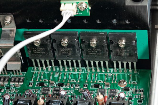 To trochę tak, jakby przy niskich mocach wzmacniacz pracował na "oszczędnym" biegu, a wyżej się rozkręcał. Zmiany następują jednak płynnie i niezauważalnie w brzmieniu, trudno też wskazać poszczególne etapy pracy patrząc na wyniki pomiarów. Klasa G oznacza jednak znaczne skomplikowanie układu, zwłaszcza sekcji zasilającej, której część powędrowała aż na radiatory końcówek.