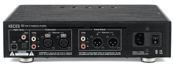 Keces S3 jest (przed)wzmacniaczem w pełni zbalansowanym, taką konstrukcję mają tutaj wszystkie bloki – od wejść analogowych, poprzez regulację głośności, aż po bezkompromisową konwersję cyfrowo-analogową.