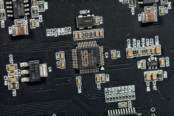 Podobnie (choć nie identycznie) przedstawia się sekcja cyfrowa. Znowu widzimy pojedynczą, 8-kanałową kość ESS Technology, ale tym razem to ES9026PRO obsługujący sygnały PCM 32 bit/768 kHz oraz DSD1024.