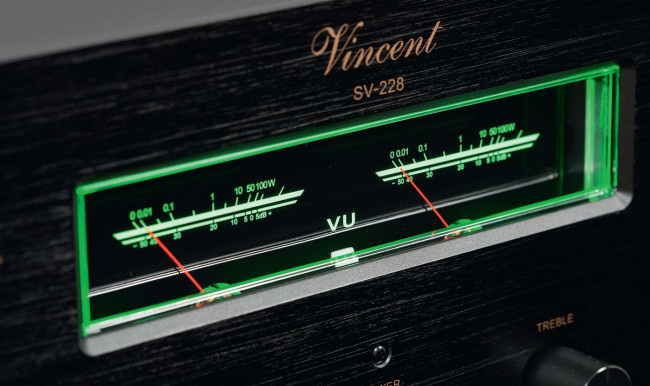 Po włączeniu wzmacniacza okno podświetla się na jasnoniebiesko, ale kolor można zmienić (inny odcień niebieskiego, zielony i czerwony). Vincent stosował wskaźniki już wcześniej, ale kompozycja SV-228 jest nowa i wyjątkowo udana.