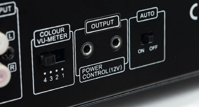 Oprócz wejść analogowych są też dwa wyjścia RCA (regulowane z przedwzmacniacza oraz nieregulowane dla rejestratora). Do sekcji analogowej przytulono panel wyzwalaczy 12 V, przełącznik do zmiany trybu podświetlenia wskaźników wychyłowych oraz wyłącznik trybu oszczędzania energii. Kolumny podłączymy do dwóch kompletów zacisków.