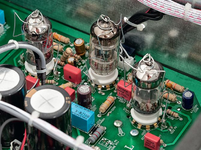 Przedwzmacniacz ma dwa stopnie wzmocnienia: w pierwszym pracuje podwójna trioda 6N4, w drugim – dwie ECC82. To popularne lampy dostępne w dużym wyborze wersji różniących się parametrami i brzmieniem, a ponieważ nie są drogie, więc można sobie tutaj stworzyć pole do eksperymentów.