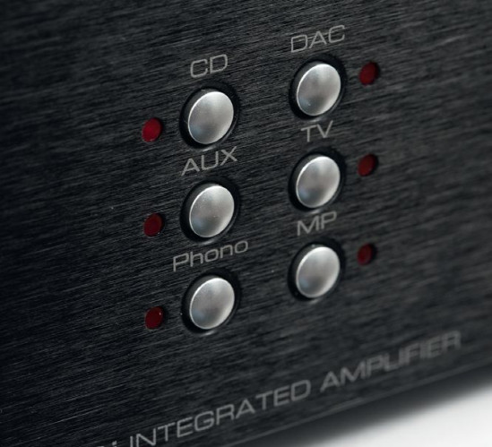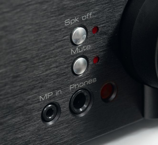 Selektor wejść ma formę sześciu niewielkich przycisków bezpośredniego dostępu. Obok wyjścia słuchawkowego (6,3 mm) jest wejście (3,5 mm) dla sprzętu przenośnego; 10 lat temu byłoby to przejawem nowoczesności, obecnie mobilne grajki "podłączamy" bez kabli, strumieniujemy, sterujemy… Ale jak się nie ma co się lubi...