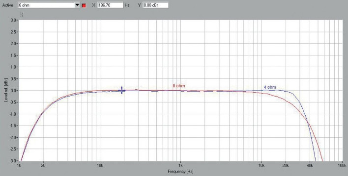 Znane są trudności impulsowych końcówek mocy z utrzymaniem liniowości charakterystyk częstotliwościowych (dla różnych obciążeń), jednak producent zastosowanych tutaj modułów końcowych ASX125A, firma ICEPower, zapewnia, że specjalne obwody korekcyjne rozwiązują ten problem.