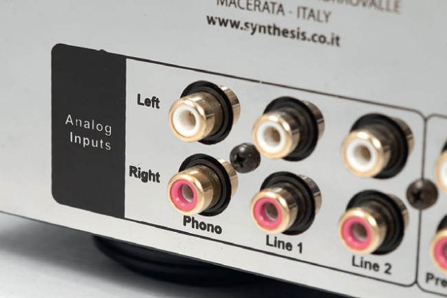 Zestaw wejść oferowanych przez Synthesis Roma 37DC jest skromny i praktyczny, z dwoma liniowymi i jednym gramofonowym (dla wkładek MM). Jest też wyjście z przedwzmacniacza – warto zastanowić się po co…Trudno przecież będzie przelicytować wysoką moc "własnych" końcówek mocy 37DC.