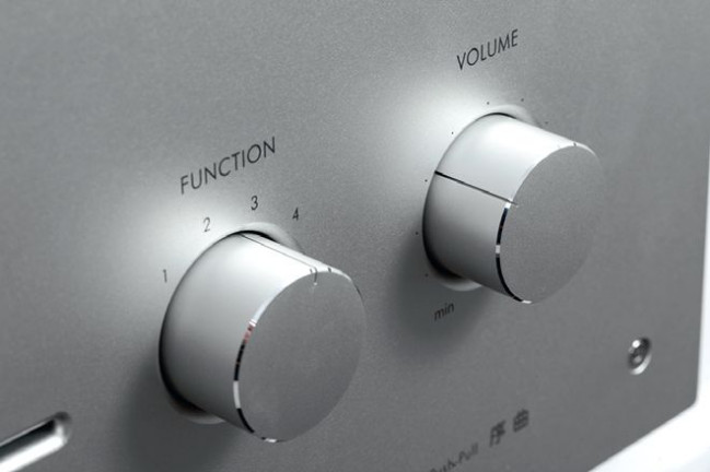 Przełączanie wejść gałką na przednim panelu jest możliwe dzięki długiemu trzpieniowi, który spina dwa oddalone od siebie elementy. Potencjometr głośności (Alps) zabezpieczono dużą metalową osłoną.