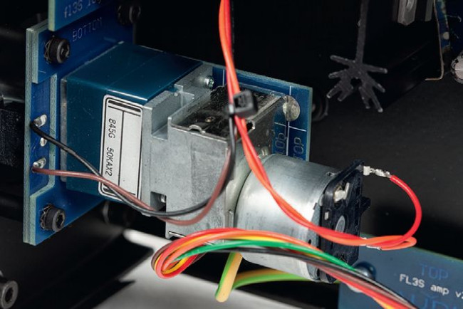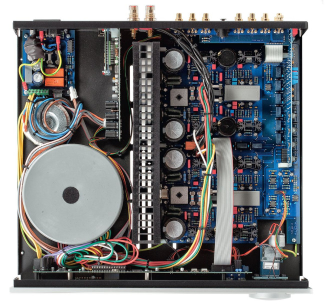 Pojedyncza jest także główna płytka drukowana zajmująca prawą część obudowy. Przełączanie wejść odbywa się z pomocą przekaźników, a w regulacji głośności pracuje znany, niebieski potencjometr Alpsa (zainstalowany na dodatkowej małej płytce drukowanej), stąd konieczność przesyłania sygnałów przewodami.