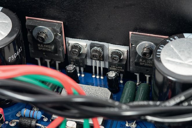 W każdej z końcówek zainstalowano dwa tranzystory bipolarne ON Semiconductor – MJL1302A/ MJL3281A. Nie są to często spotykane (we wzmacniaczach innych marek) elementy, ale Audia Flight bardzo je ceni i stosuje również w droższych modelach serii FLS.