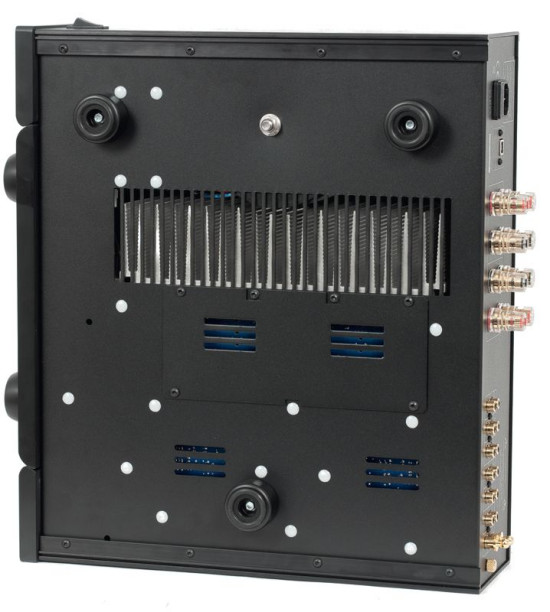 Nie ma natomiast wyjścia słuchawkowego; oczywiście można podłączyć zewnętrzny wzmacniacz słuchawkowy, ale to przecież dodatkowy wydatek. Na tylnym panelu pojawia się kilka nietypowych rozwiązań. Po lewej stronie znajduje się złącze USB przyjmujące PCM 32 bit/384 kHz oraz DSD128.
