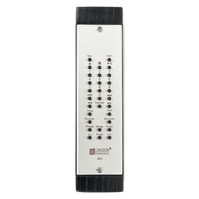 Unison Research ozdabia konstrukcje czysto lampowe drewnianymi elementami, obudowy w serii Unico są bardziej "tranzystorowe". Wyświetlacz pokazuje poziom głośności, który my regulujemy "zwyczajnym" pokrętłem, jednak jest to połączone z układem sterowanym mikroprocesorowo.