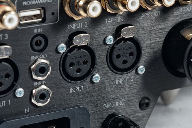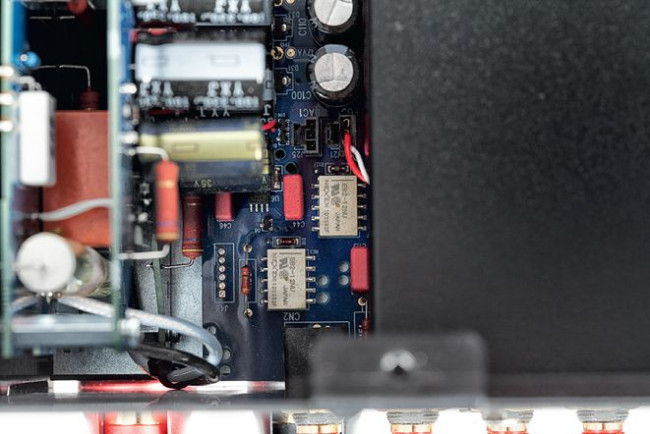 Sekcja przedwzmacniacza wylądowała niżej, w tylnej części obudowy. Wejścia sterowane są przekaźnikami, regulacja głośności to autorski układ złożony z precyzyjnych rezystorów i przełączników (stąd charakterystyczne stuki towarzyszące zmianie ustawień); zależnie od wybranego poziomu, w ścieżce sygnałowej znajduje się jeden lub dwa rezystory.