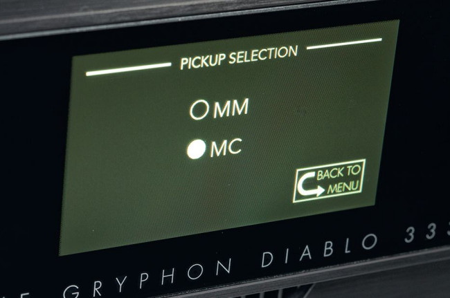 Testowany egzemplarz Gryphona Diablo 333 został wyposażony w jeden taki moduł – przedwzmacniacz gramofonowy PS3 (26 000 zł). Wybór jego zasadniczych trybów pracy, czyli MM lub MC, odbywa się po wejściu do menu integry, a dodatkowe ustawienia przeprowadzamy mikrozworkami (w dwóch rzędach, niezależnie dla każdego kanału) na samej płytce modułu, tuż przy gniazdach wejściowych.