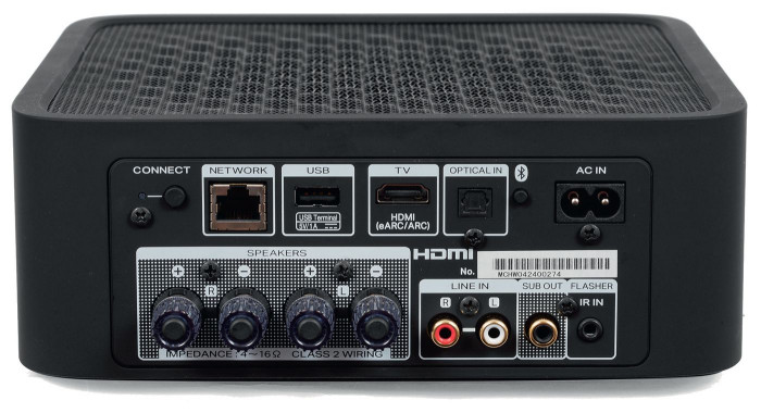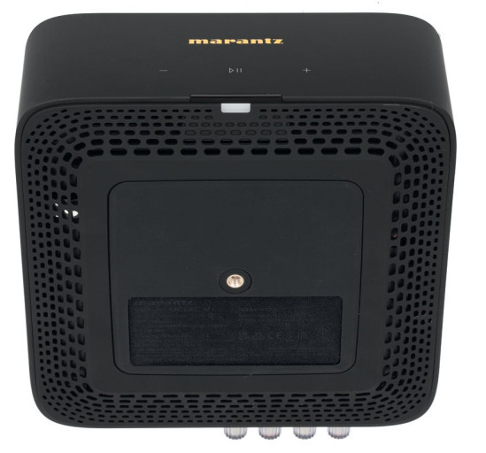 Marantz M1 nie potrzebuje zewnętrznych anten – tak jak większość HEOS-owego sprzętu Marantza (i Denona), obudowa jest w dużej części wykonana z plastiku, więc anteny systemów Wi-Fi oraz Bluetooth można było ukryć wewnątrz.