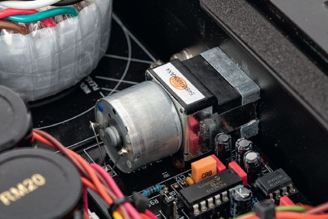W przedniej części, tuż za pokrętłem głośności, widać znajomy potencjometr Alps, ale jest on tylko sterownikiem. Właściwa regulacja odbywa się w tłumikach scalonych.