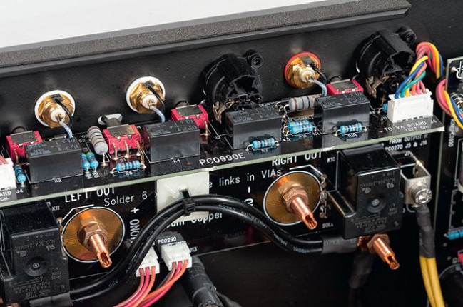 Symetryczna konfiguracja całego toru wymaga zdublowania wszystkich gałęzi (także tych SoundEngine), co jeszcze skuteczniej obniża zniekształcenia. Nie tylko wejścia, ale i wyjścia są załączane przez przekaźniki.