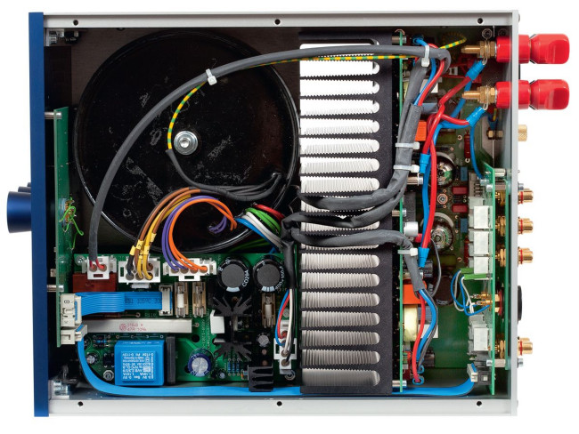 Część górnej ścianki wycięto w formie wentylacyjnej szczeliny, zabezpieczając ją siateczkową maskownicą; pod nią znajdują się nie tylko elementy końcówek mocy, ale i przedwzmacniacza (źródłem ciepła są także lampy).