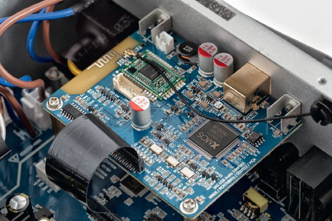 Odbiornik Bluetooth (wraz z zewnętrzną anteną) został wyposażony w układy dekodujące aptX HD. Na dość dużym radiatorze zainstalowano scalone moduły wzmacniające firmy ST Microelectronics, model TDA7293 – po dwa w każdym kanale.