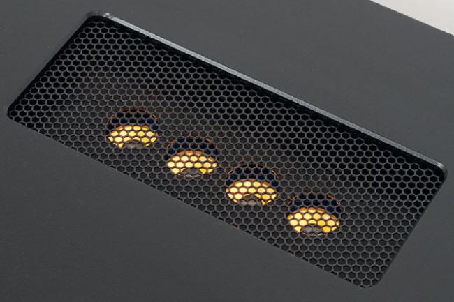 Podświetlenie towarzyszy też obszarowi, w którym (pod siateczką w górnej części obudowy) zainstalowane są Nuvistory. Lampy tego typu są bowiem zamknięte w metalowych osłonach, więc na zewnątrz same nie świecą, co odbiera całej "zabawie" trochę uroku.