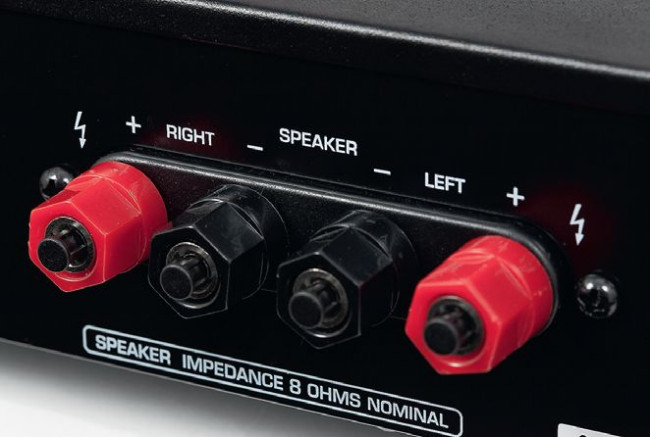 Do dyspozycji mamy trzy wejścia liniowe i jedno gramofonowe (dla wkładek MM). Gniazdo mini-jack pełni funkcje serwisowe. Nie ma żadnych dodatków cyfrowych. Zespoły głośnikowe podłączymy do jednej pary terminali. Wszystkie złącza są pozłacane.