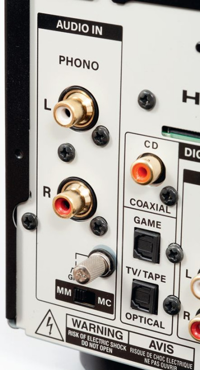 Na świat analogowy otwiera się trzema wejściami liniowymi i jednym gramofonowym, które obsługuje zarówno MM, jak i MC. Impedancję obciążenia dla MM ustalono na typowe 47 kΩ, w przypadku MC jest to 110 Ω.