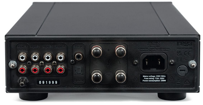 Brio był wzmacniaczem purystycznie analogowym; Rega Brio Mk7 jest pierwszą wersją, która wchodzi w obszar cyfrowy. Co prawda dość ostrożnie, bowiem ma tylko dwa podstawowe złącza – jedno optyczne i jedno współosiowe.
