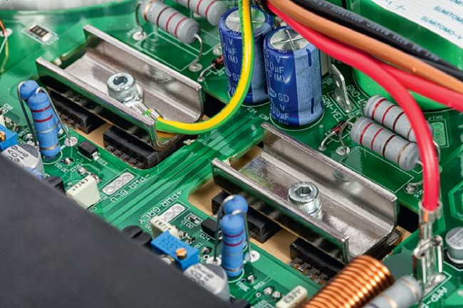 Końcówki mocy opierają się na dwóch parach (po jednej na kanał) tranzystorów Sanken STD03N/ STD03P, przykręconych nie do klasycznego radiatora, ale do dna obudowy, które pełni taką rolę. To nic nowego dla brytyjskiej techniki, w podobny sposób wyglądały integry np. Naima.