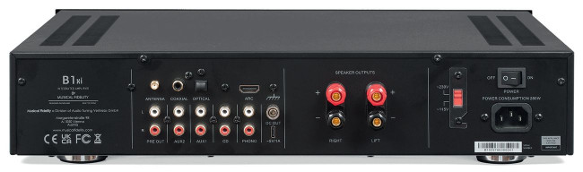 Musical Fidelity B1xi ma w sumie cztery analogowe wejścia liniowe oraz przedwzmacniacz gramofonowy, jednak już tylko w podstawowym wariancie MM (dawny B1 miał MM/MC). B1xi ostatecznie jest nowoczesną integrą, więc ma także wejścia cyfrowe: współosiowe, optyczne, a nawet HDMI z ARC.