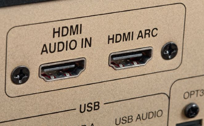 Jest HDMI z (e)ARC, a obok jeszcze "normalne" wejście HDMI. Wielostykowe złącze (oznaczone Wireless Digital Module) służy do podłączenia opcjonalnej przystawki Bluetooth (z kodowaniem aptX HD).
