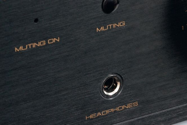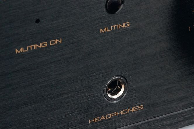 Są dwa przyciski związane z włączaniem. Główny, mechaniczny, ulokowano centralnie, przycisk stand-by jest nieco z boku i jest mniejszy. Na przednim panelu znajduje się jeszcze włącznik szybkie wyciszanie i 6,3-mm wyjście słuchawkowe.