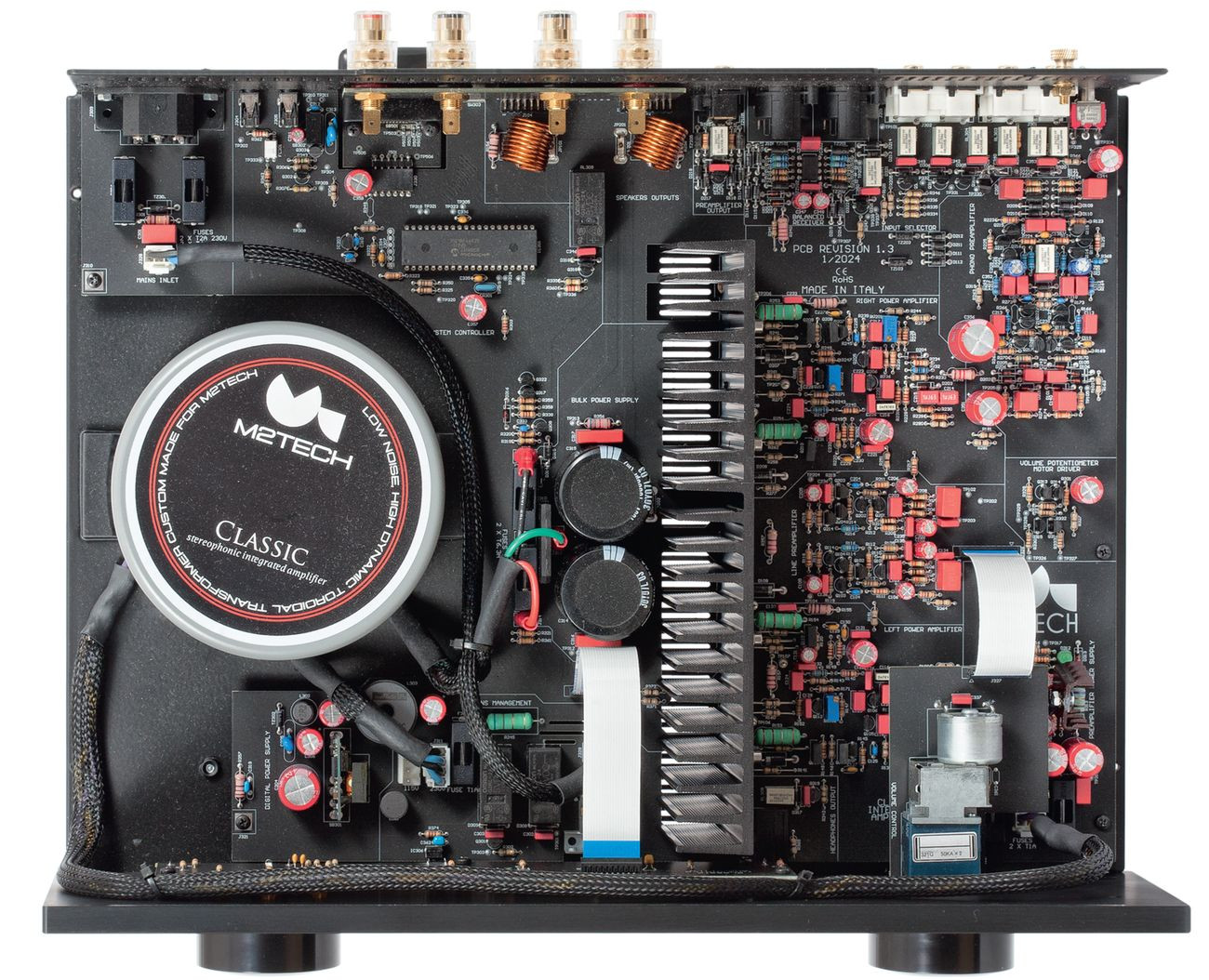 Układy Wi-Fi można całkowicie odłączyć (z obawy o ich negatywny wpływ na dźwięk), do czego służy niewielki przełącznik. Integra ma też dwa typowe wyzwalacze 12 V. Większość układów zmieściła się na jednej dużej płytce. Niemal nie widać połączeń przewodami. Nie licząc niewielkiego, impulsowego modułu dla trybu czuwania, zasilanie opiera się na okazałym transformatorze toroidalnym (w estetycznej, ekranującej obudowie), połączonym z parą kondensatorów. Przedwzmacniacz ma dodatkowe moduły filtrujące i stabilizujące, już na głównej płytce.