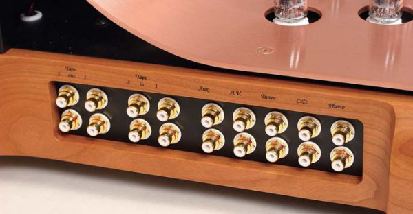 Za miedzianymi elementami widać potężne kubki z transformatorami - zasilającymi oraz wyjściowymi. Chociaż w jednym chassis, to jednak Unison Research Absolute 845 SE jest przez firmę nazywany wzmacniaczem dual-mono. I słusznie, bo wszystkie układy są wykonane osobno dla lewego i prawego kanału, wspólne są tylko manipulatory, także wejścia dla obydwu kanałów umieszczono razem, z boku urządzenia.
