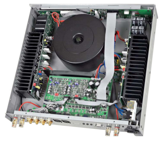 W centrum ulokowano duży transformator toroidalny zamknięty ekranem, z niezależnymi odczepami, przygotowanymi dla dwóch kanałów. Moduł przedwzmacniacza dosunięto do tylnej ścianki i wyposażono także we własny płaszcz ekranujący.