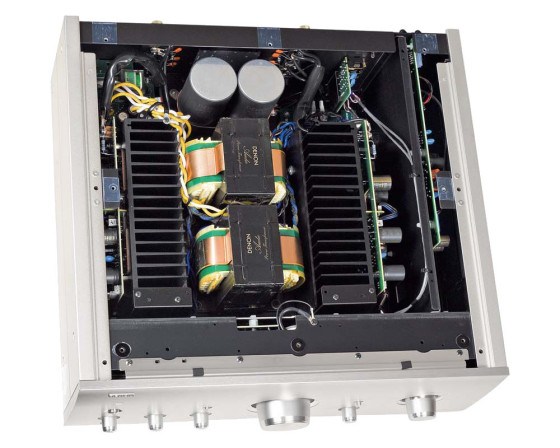 Wnętrze konstrukcji jest piękne. Układ dual mono zaczyna się od dwóch dużych transformatorów EI. Urządzenie składa się z sześciu kompletnych bloków, rozmieszczonych tak, aby budowa mechaniczna urządzenia możliwie dobrze przeciwdziałała drganiom - co nazwano Precision Direct Mechanical Ground Construction.