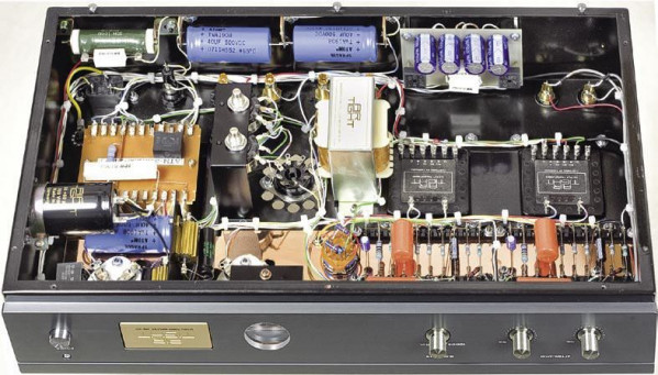 Większość połączeń wykonano w technice punkt-punkt, co zmusiło do prowadzenia wielu przewodów. Producent uporządkował i ułożył je w wiązki chyba najlepiej, jak to było możliwe, dzięki czemu całość sprawia naprawdę dobre wrażenie. Potencjometry wzmocnienia to niezmotoryzowane Alpsy.