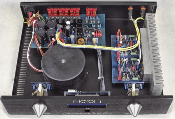 Przedwzmacniacz zmontowano na jednej płytce razem z zasilaczem. Gniazda RCA są zwykłe, lutowane do płytki, ale złocone. Wejścia są zmieniane w przekaźnikach, a wyjścia buforowane układami scalonymi NE5532.