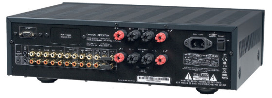 Na wysokiej tylnej ściance jest wystarczająco dużo miejsca, by wygodnie, bez ścisku ulokować dwie pary terminali połączeniowych. W związku z ciągłymi nieporozumieniami "impedancyjnymi", obok wyjść znalazła się także informacja o tym, że minimalne obciążenie wynosi 4 omy w przypadku podłączenia jednej pary kolumn i 8 omów w przypadku podłączenia (i aktywowania) dwóch par.