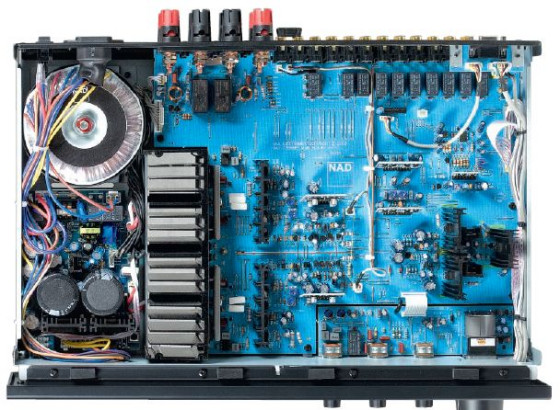 Za regulację wzmocnienia odpowiada wysokiej klasy potencjometr Alps, regulacje barwy "nie miały tyle szczęścia", dlatego najlepiej wyłączyć je przyciskiem Direct. W końcówkach mocy pracują po dwa tranzystory na kanał, przytwierdzone do niewielkiego radiatora. Transformator toroidalny znajduje się przy tylnej ściance.