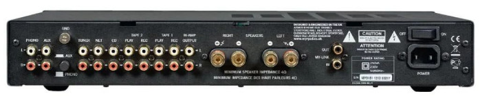 Wejść liniowych jest pięć, z czego dwa to pętle do nagrywania. Na końcu widać wyjście z przedwzmacniacza opisane "Bi-amp", bo może posłużyć do stworzenia systemu z dwoma wzmacniaczami stereo, ale może też wysłać sygnał do aktywnego subwoofera.