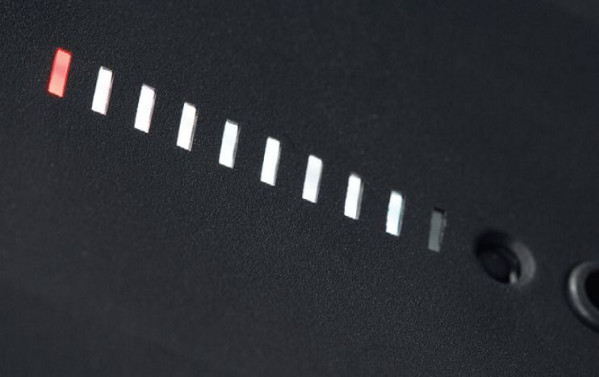 W centralnej części znajduje się dziesięć diod, pozwalających się zorientować, w którym miejscu na skali głośności aktualnie operujemy. Dolna dioda sygnalizuje tryb wyciszenia, a najwyższej, oprócz maksymalnego położenia regulacji, przypisano dodatkową funkcję - pulsujące czerwone światło ostrzega w sytuacji, w której końcówki mocy wpadają w obszar przesterowania.