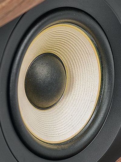 Baza stereo nie będzie więc tak szeroka, jak pozwalałaby na to całkowita szerokość urządzenia. 13-cm nisko-średniotonowe mają membrany celulozowe, w charakterystycznym dla JBL-a (chociaż bliskim naturalnemu) mlecznobiałym kolorze, z koncentrycznymi przetłoczeniami.